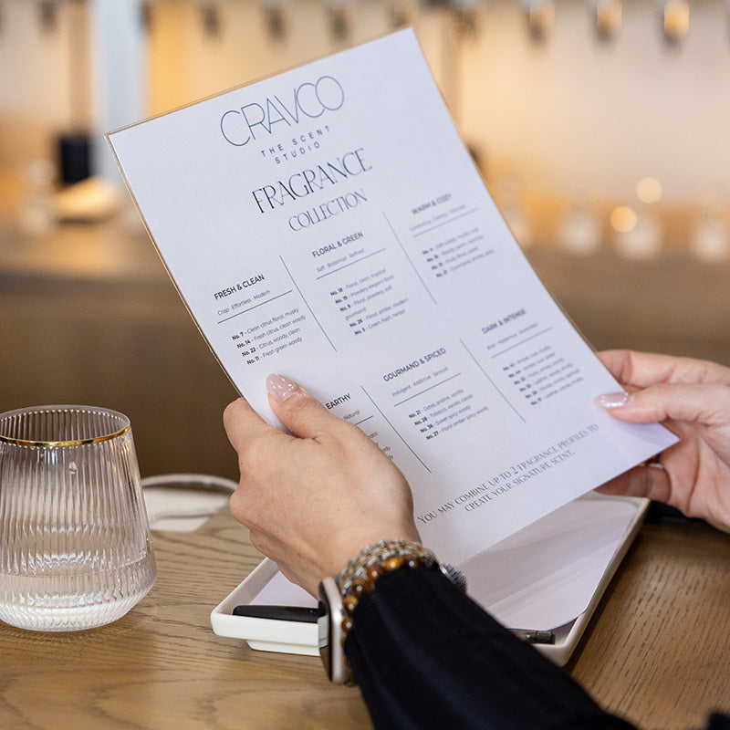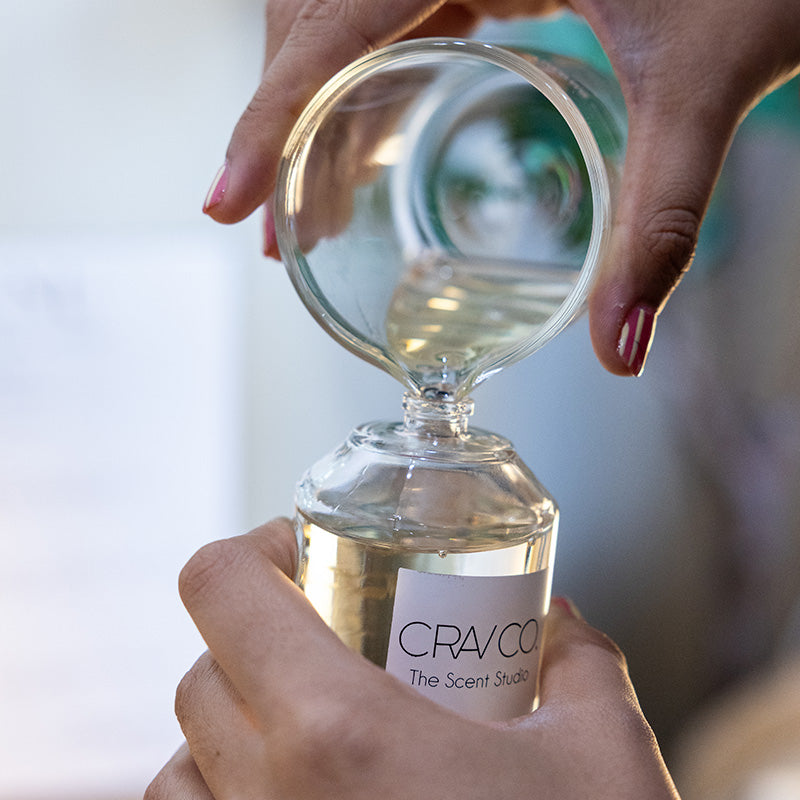 Choose from 25 curated perfume formulas created by world-class perfumers, then blend up to two to craft a scent that's uniquely yours. Our team guides you through testing and refining until it feels unmistakably right.